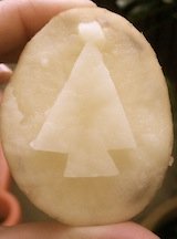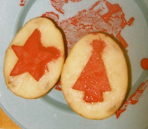 Printing your own Christmas gift wrap with potato prints means you don't have to go and buy it, and you have something much lovelier to parcel up those family presents.