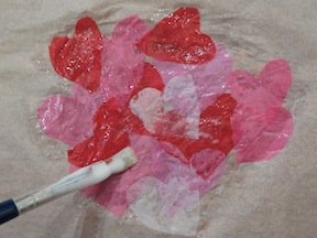 2. Cover some white tissue in PVA glue and layer on the hearts making sure there is enough glue to stick them all well down.