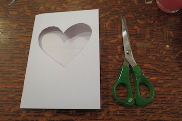 3. Draw a large heart shape on to a folded piece of card stock and using some scissors cut it out. This does not have to be perfect though younger kids will need help. If an adult is going to be around they might be able to use a craft knife for this but don't let the kids get hold of it!