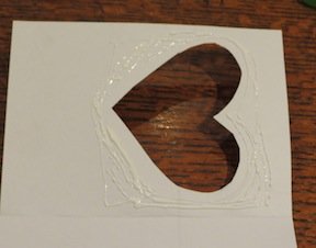 5. Paint some glue around the heart shape on the inside of the card.