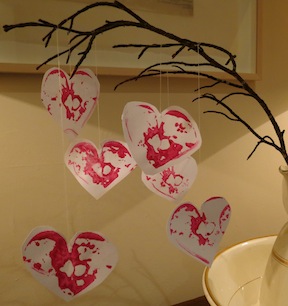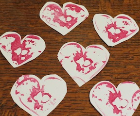 We decided to use pink paint on white paper but you can choose whatever valentine colours you like.