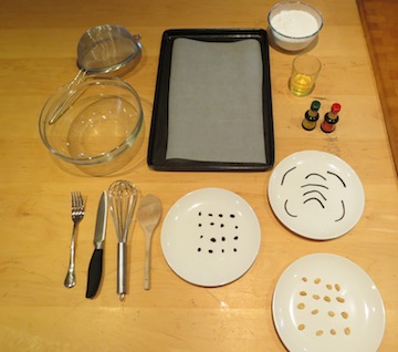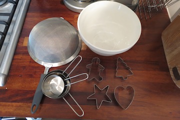 1. You will need a bowl, cookie cutters, measuring cups, a sieve and, ideally, an electric mixer