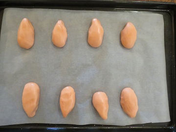 6. Do this with each piece and lay them out on the baking tray.
