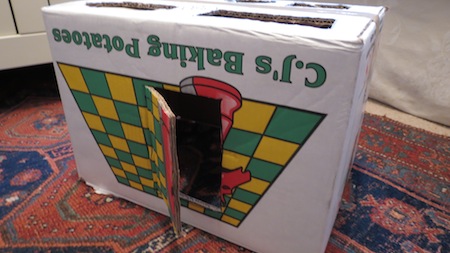 PS: I cut a door in the side of the box as 'door' is Beanie's favourite word right now. This is a great addition to a Posting Box as it can open and close!