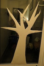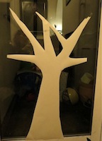 3. Cut out your tree and stick it to a wall or door. We stuck it to the glass door that leads to our back yard using sticky tape, but you could use blu-tak.